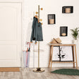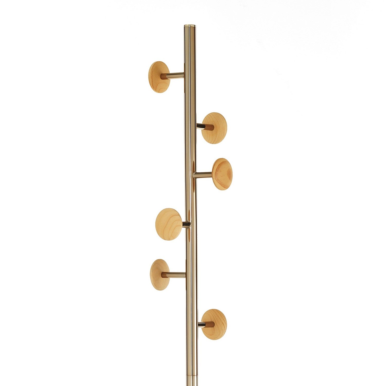 Appendiabiti / portaombrelli realizzato in acciaio verniciato Oro Rosa lucido "Rose Gold" - pomelli realizzati in legno massello finitura Rovere - vaschetta raccogli gocce - Nr.6 ganci - dimensioni base cm. Ø.28 - dimensioni cm. H.180 x Ø.28.