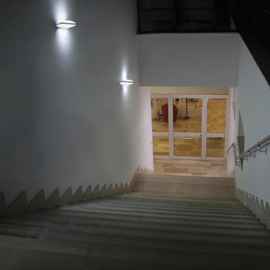 La sua struttura è in alluminio pressofuso e diffusore opale in PC, completo di controbase per il fissaggio.