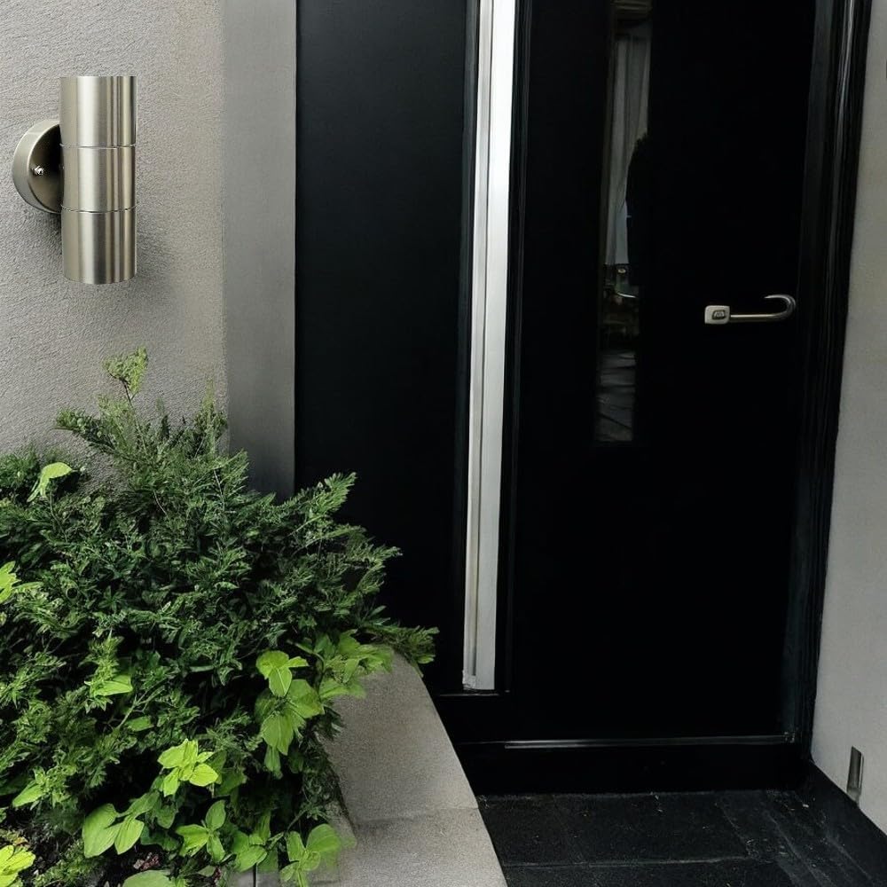 Moderna applique da parete esterna, con alimentazione elettrica, 2 luci, in acciaio inox, modello up and down, attacco GU10, faretto .