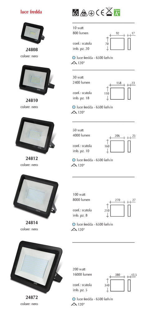 Proiettore Led IP65 Faro Led luce fredda 6500K