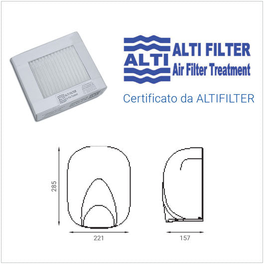 Il filtro EPA E11 garantisce protezione contro il 97,66% dei batteri (su particelle da 0,3 micron) presenti nell’aria che viene utilizzata durante l’asciugatura.