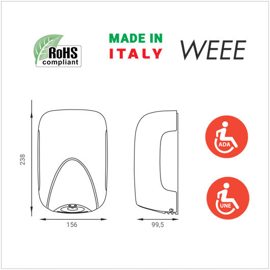- Design di ultima generazione: versioni in ABS bianco, cromato. Funzionamento automatico con distanza di induzione regolabile.