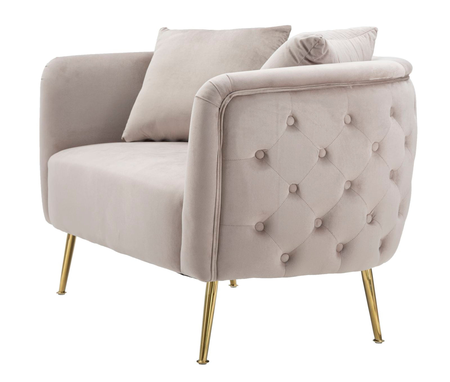 Le gambe in metallo sono caratterizzate da un'elegante finitura color oro, conferendo al divano un tocco di glamour e un aspetto moderno.