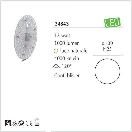 Modulo a Led tondo 12Watt con calamite per la sostituzione e conversione delle plafoniere con Neon circolare, alogene e con tradizionali portalampada, trasforma la vostra plafoniera in una a LED senza opere murarie.