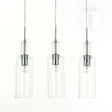 Lampadario  paralume realizzato in vetro trasparente cm.H34 Ø10 - lampadario cm. H110 L48 P10 - filo elettrico cm.70 (regolabile) - predisposto per nr.3 lampadine E27 max 40W(non in dotazione).