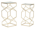 Set di 2 tavolini in metallo dorati e vetro cm 31,5x31,5x68-28x28x64