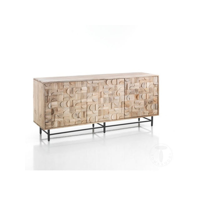 Madia 3 ante realizzata in legno massello di Mango, ricca di dettagli e rifinita tutta a mano.