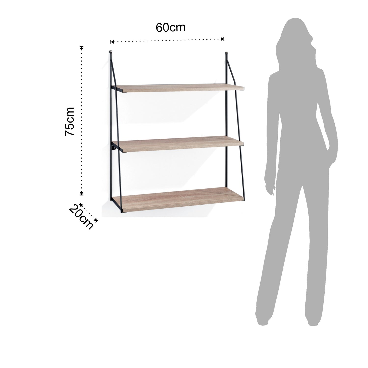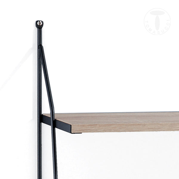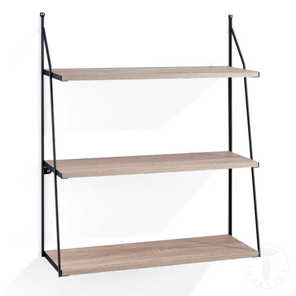 -Mensola da parete ripiani realizzati con pannelli ecologici di particelle di legno impiallacciato Rovere - Colore Rovere filo in acciaio di colore Nero mm. Ø.7