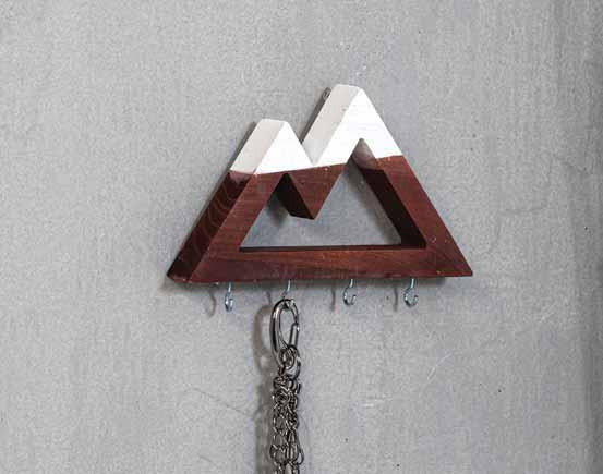 Portachiavi in Legno da Appendere, con 4 ganci portachiavi in metallo, disponibile in due Colorazioni :