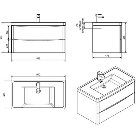 €316,00Prezzo unitario /Non disponibileMobile bagno sospeso bianco lucido 90x48x55