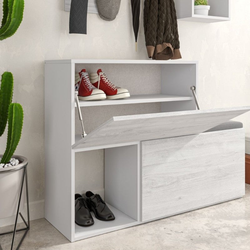 Doppia scarpiera con ante a ribalta, Vano a giornoe Cuscino.