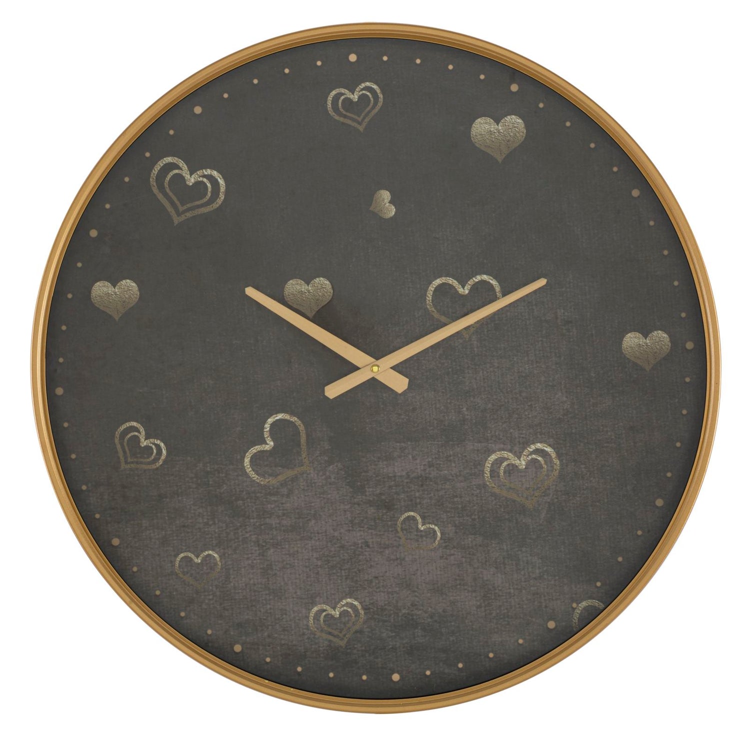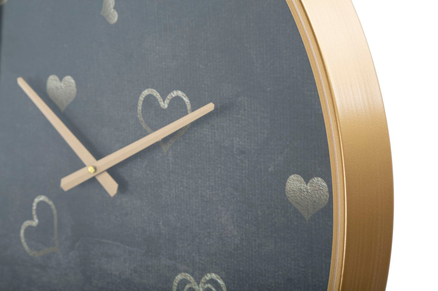 Orologio da parete in mdf, metallo e vetro dalle linee geometriche impreziosito da eleganti decorazioni a cuore.