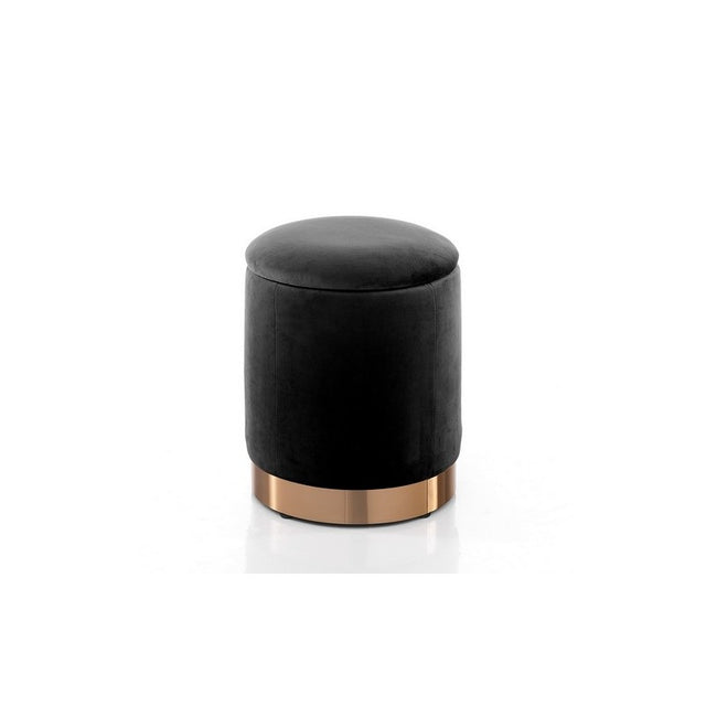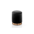 Pouf dimensioni cm. Ø.31 x H.38 - rivestito in morbido tessuto di microfibra effetto velluto di colore NERO - base realizzata in metallo di colore Oro "Rose Gold" - non sfoderabile - vano contenitore - struttura interna il legno.
