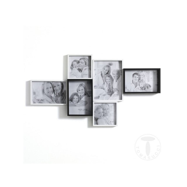 Portafoto realizzato in MDF laccato Bianco opaco - cm H.32 x L.57 x P.3,8 - predisposto per: Nr.3 foto cm.10x15 Nr.2 foto cm.10x10 Nr.1 foto cm.13x18