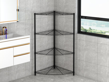 Scaffale Angolare 4 Ripiani in Metallo Nero Misure 44x44x117 cm