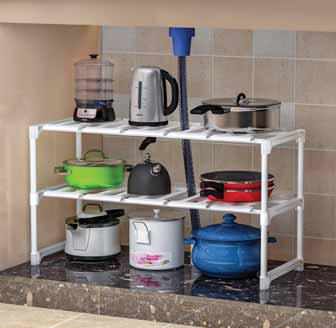 Scaffale estensibile, realizzato con tubo in metallo verniciato 2 piani Misure 52/86x30,5x44 cm ...è stato ordinato al fornitore e verrà spedito non appena sarà di nuovo disponibile.