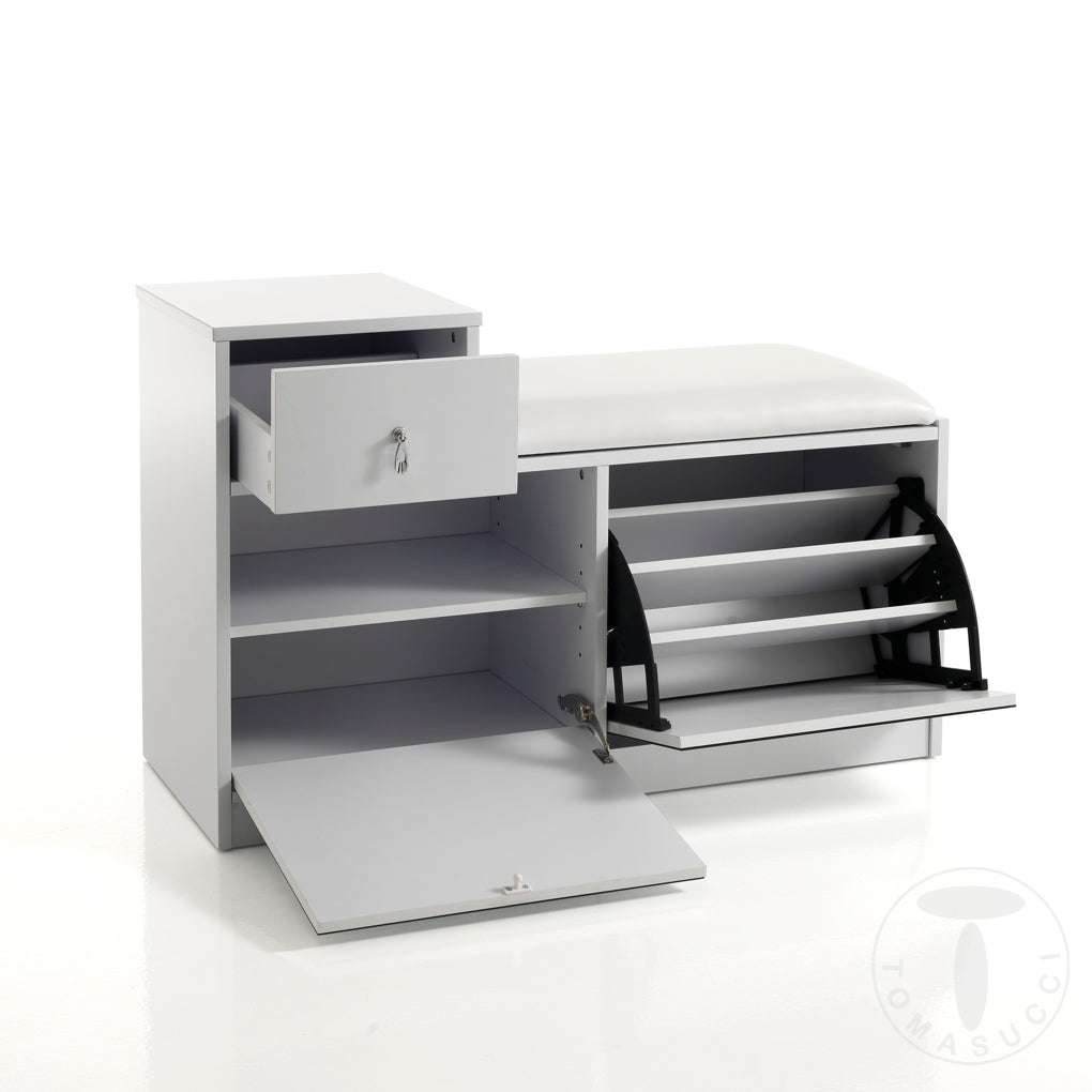 Scarpiera e panca due in un solo prodotto di colore Bianco
