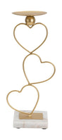 Set 2 Pezzi Portacandele in metallo dorato con eleganti cuoricini decorative e base in marmo bianco.