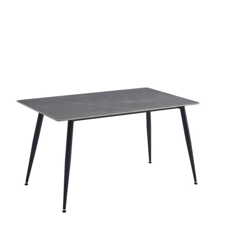 €165,90Prezzo unitario /Non disponibileTavolo 140x80 con top in ceramica effetto marmo grigio opaco e gambe in metallo nero.
