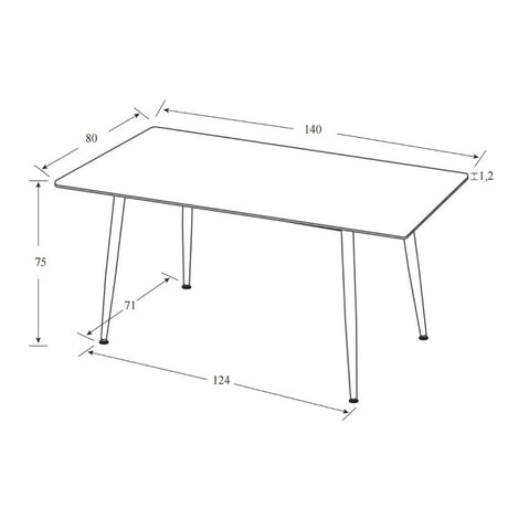 Tavolo 120x70x75 cm con piano bianco lucido e gambe nere