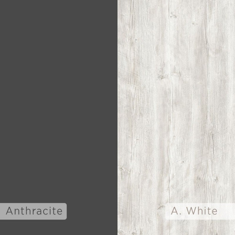 Colore antracite e bianco vintage, 2 armadietti chiusi, 2 scomparti aperti, 2 mensole
